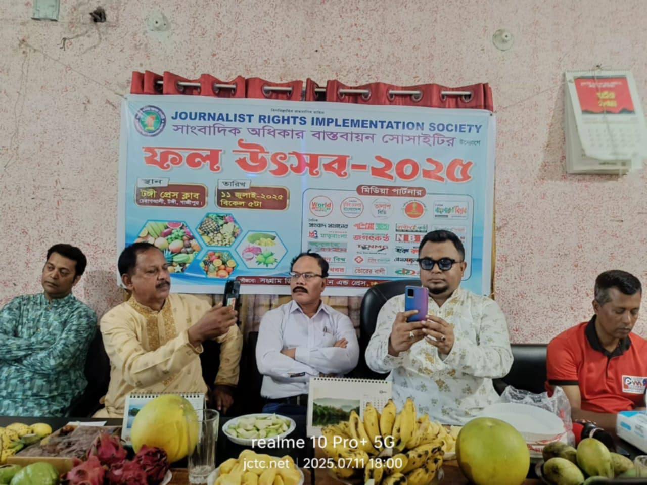 এক আনন্দঘন পরিবেশে টঙ্গী প্রেস ক্লাবে অনুষ্ঠিত হলো সাংবাদিক অধিকার বাস্তবায়ন সোসাইটির আয়োজিত বর্ণাঢ্য ফল উৎসব। শুক্রবার (১১ জুলাই) বিকেল ৫টা থেকে রাত ৮টা পর্যন্ত চলা এ আয়োজনটি পরিণত হয় সাংবাদিকদের এক মিলনমেলায়।