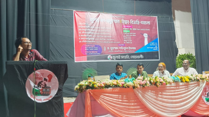 ১৭ জুলাই ২০২৫ নোয়াখালী জেলা শিল্পকলা একাডেমিতে অনুষ্ঠিত হলো "জুলাই গণঅভ্যুত্থান, বিপ্লব-বিভ্রান্তি-পথচলা" শীর্ষক এক বিশ্লেষণধর্মী আলোচনা সভা, যেখানে জাতির অতীত-বর্তমান ও ভবিষ্যৎ রাজনৈতিক দিকচিত্র নিয়ে উঠে আসে গুরুত্বপূর্ণ আলোকপাত।